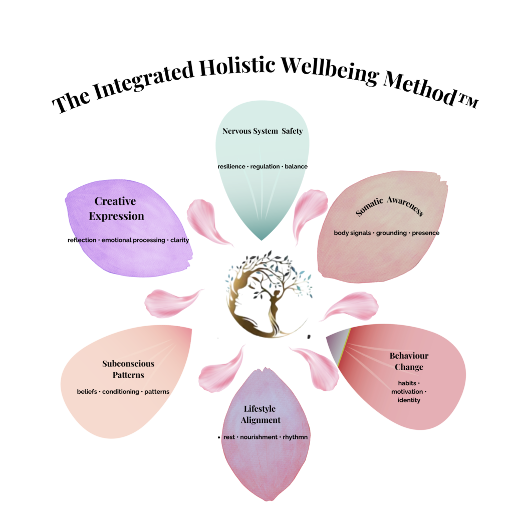 With a background in counselling, hypnotherapy, and behavioural change, her work has evolved to include a broader understanding of how the body, mind, and environment interact. Rather than focusing on quick fixes or surface-level solutions, she works with the underlying patterns that shape how people think, feel, and respond to life.